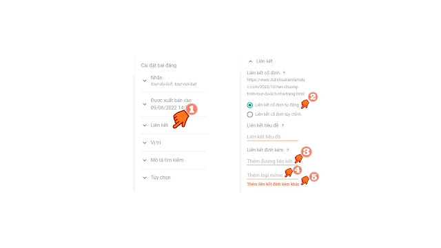 | ở phần cài đặt bài đăng chọn [Liên kết] |